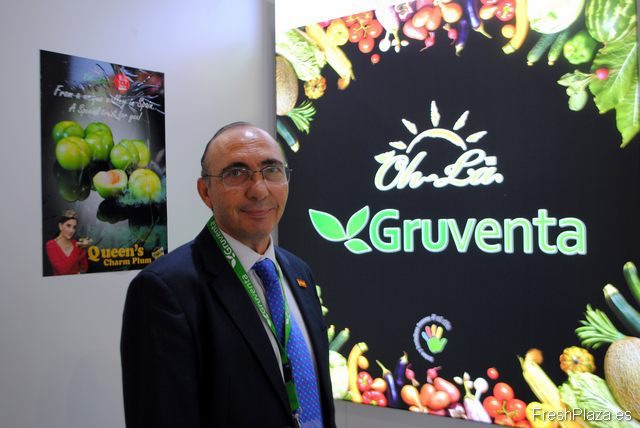 Fermín Sánchez, gerente general de Gruventa, promocionando sus ciruelas Queen's Charm, muy dulces.