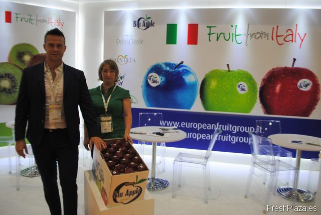 Milena Duberstein y Nicola Detomi, de European Fruit Group, Italia.