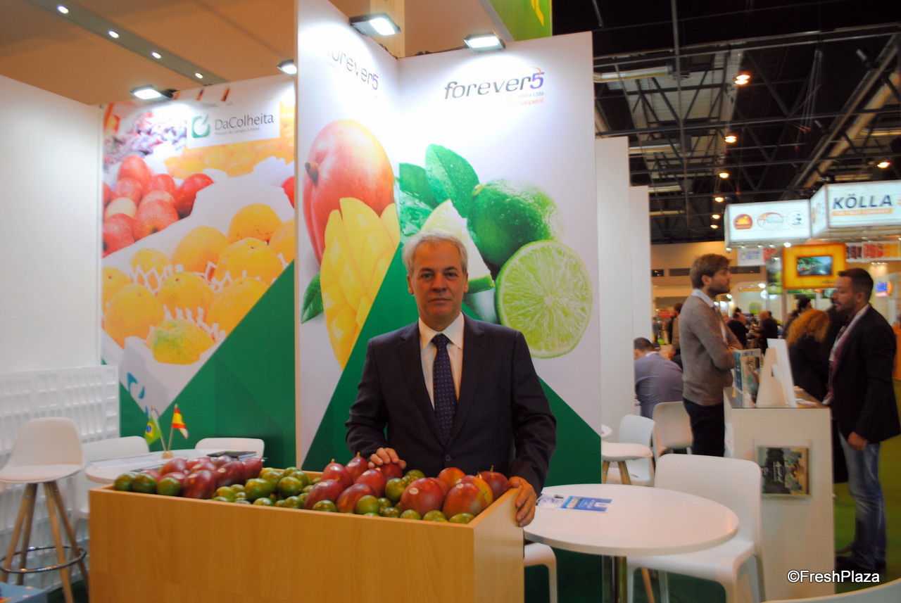 Alberto Casanova y Bruno Crabé, en el stand de la empresa de Granada Frutas Manzano, presentando su gama de chirimoya, mango y aguacates.