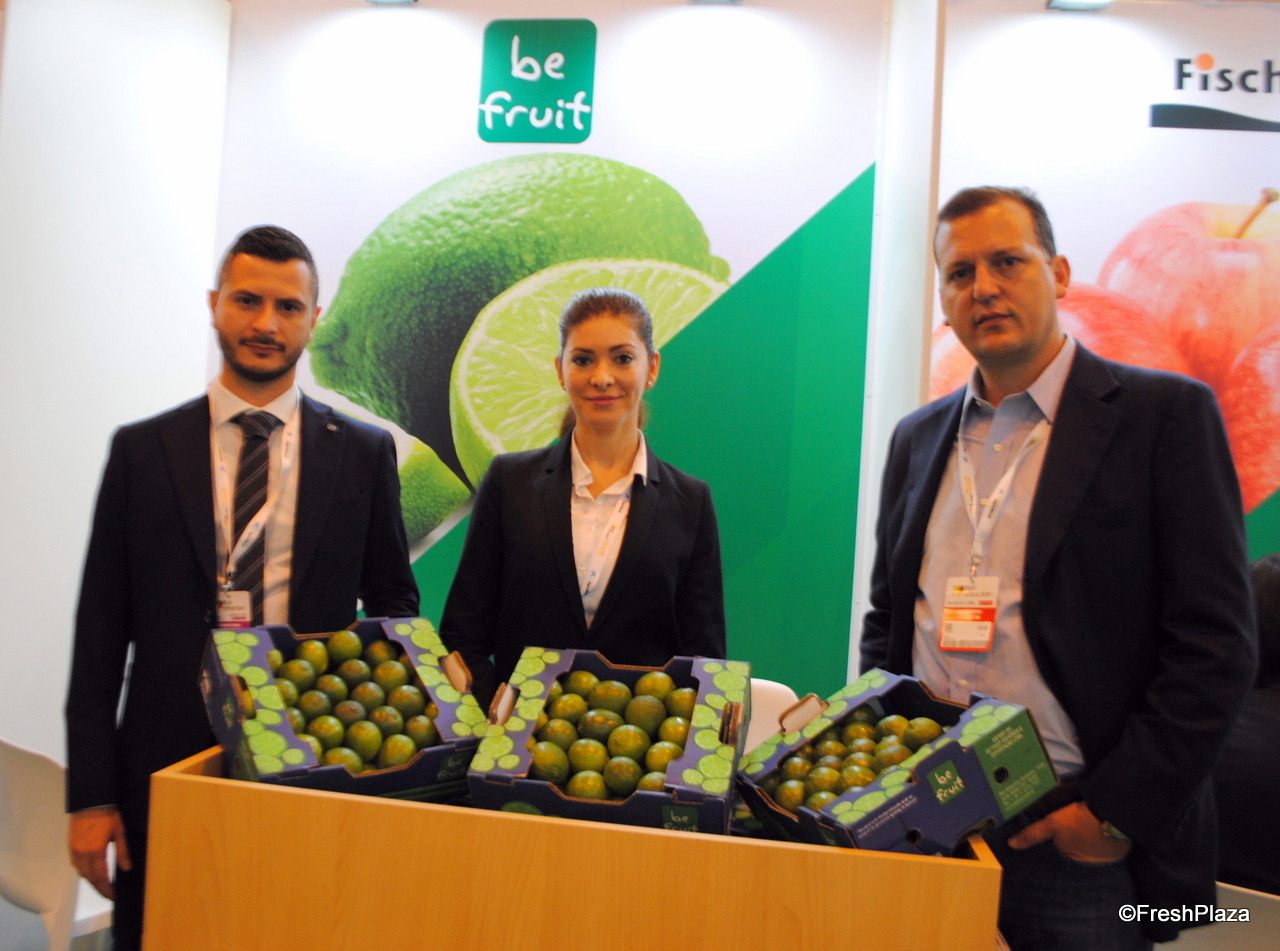 Equipo de la empresa malagueña Axarfruit, promocionando sus mangos, aguacates y limones convencionales y ecológicos.