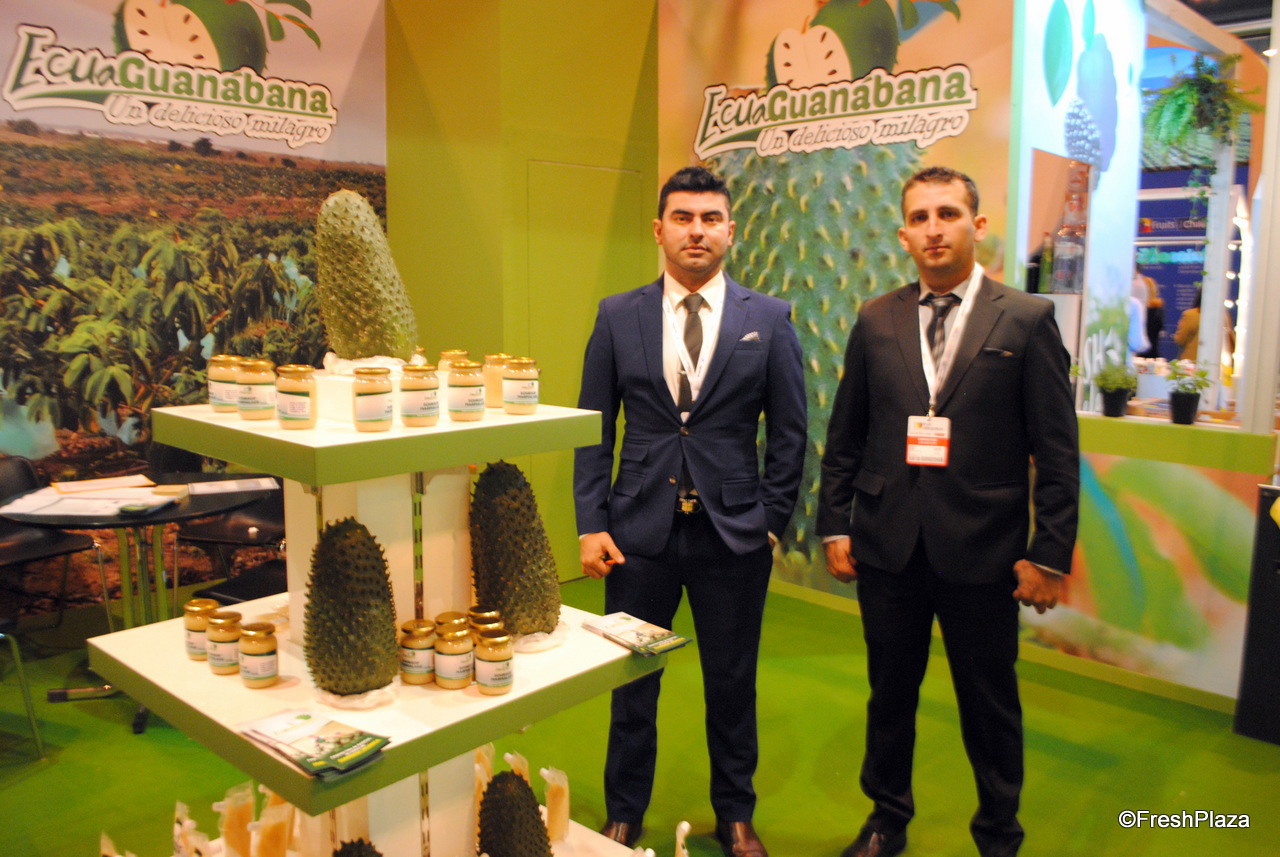Tito Zambrano y Javier Páez, de Ecuaguanabana, promocionando un producto todavía no muy conocido en el mercado europeo, la guanábana.