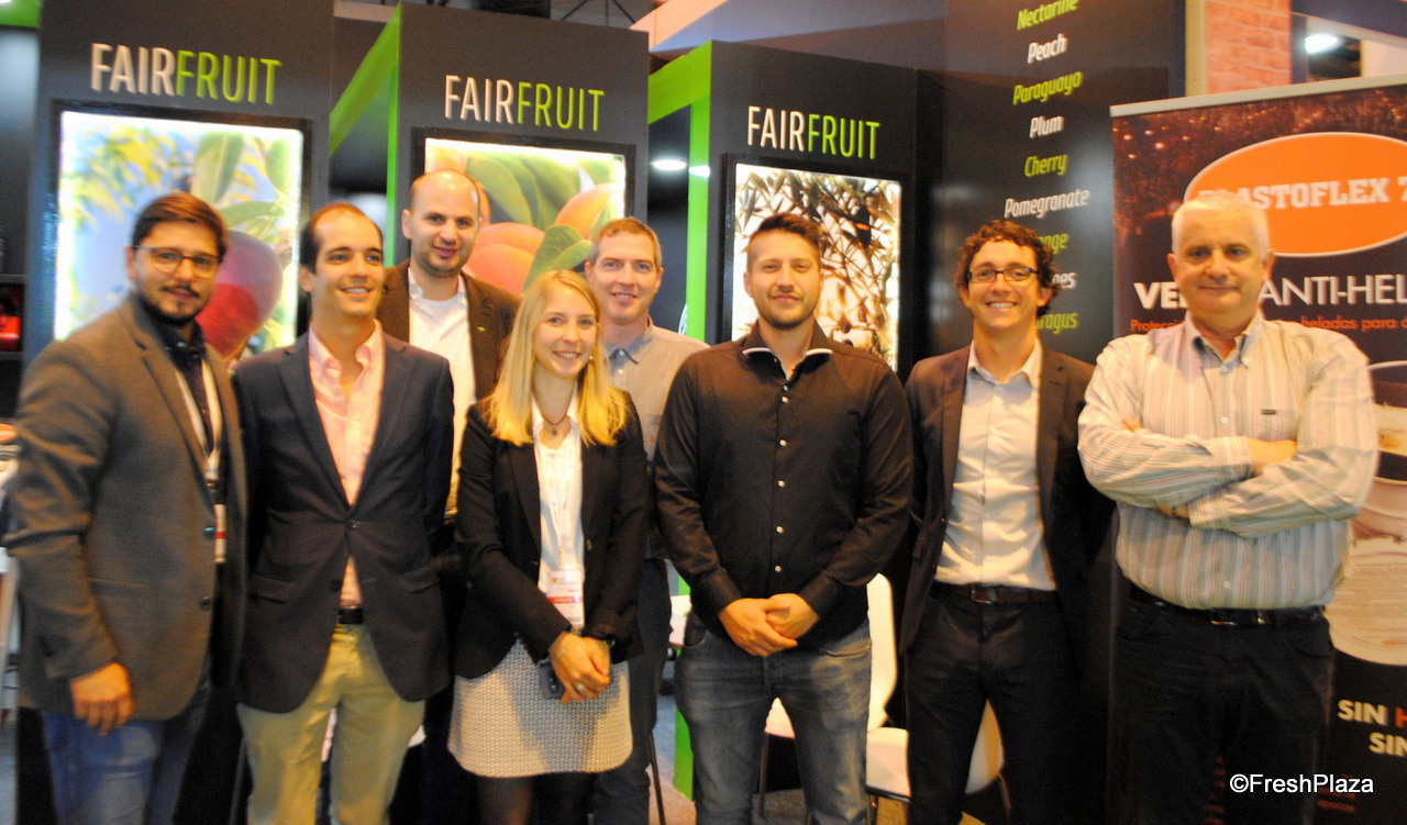 Stephane Hellin, de ACMH International, empresa de desarrollo de negocios de Francia con Diana y Luiz Eduardo Raffaello, de Befruit, Brasil, que es el productor con la que colabora.