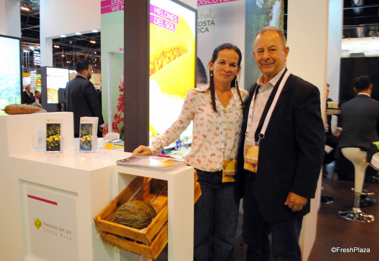 Desde Costa Rica presentando sus melones estuvo la empresa Melones del Sol, con Marbeth Venegas y Ricardo Garrón.