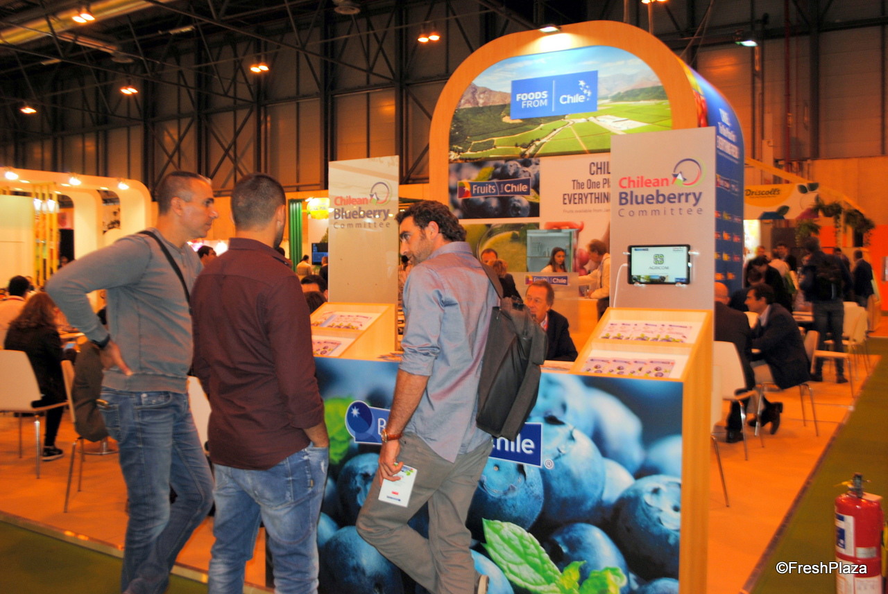Parte del pabellón chileno. En esta foto se ve el Comité de Arándanos de Chile.