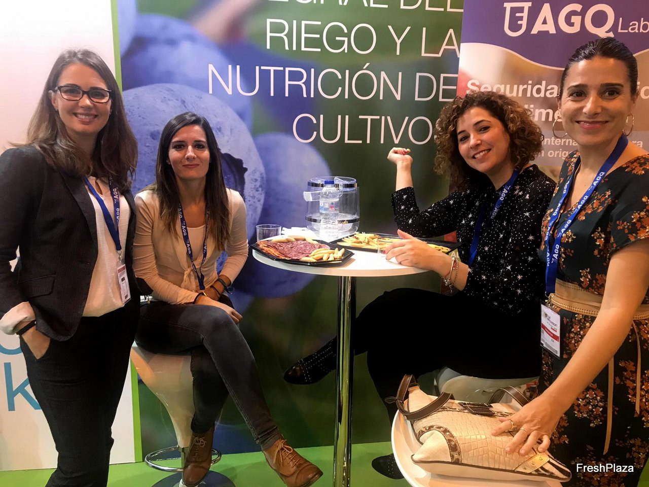 Linda Bloomfield y Emma Grant, de Phoenix Media Network, en el stand de FreshPlaza.