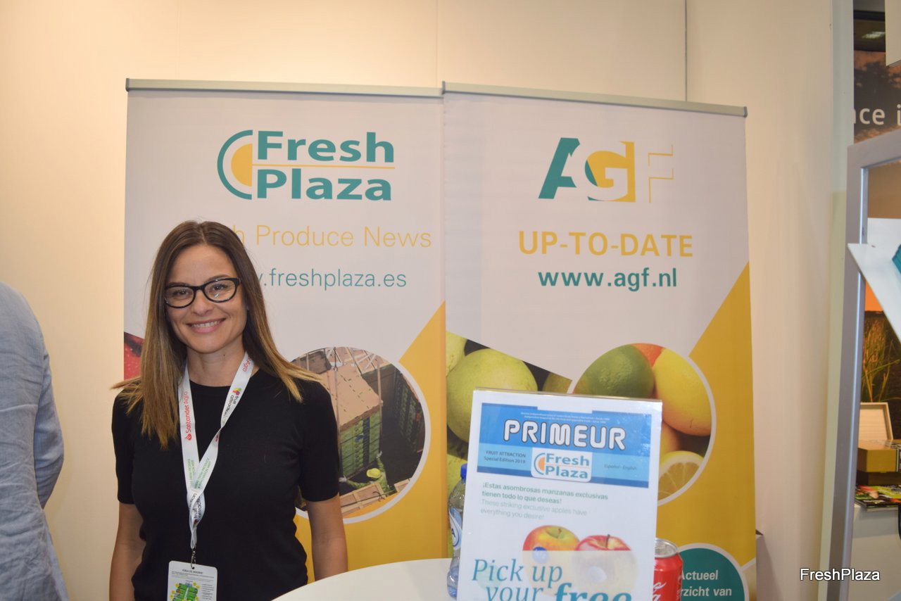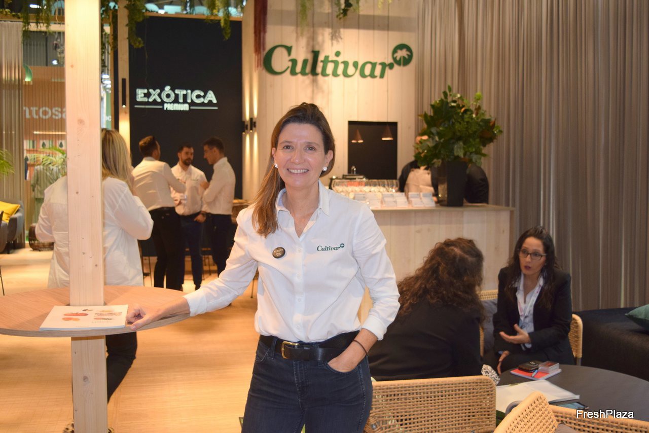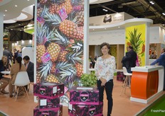 Magüi Martín, Directora de marketing y comunicación la Compagnie Fruitière España y las piñas SCB Ana’dou Suprême cosechadas en su punto de madurez.