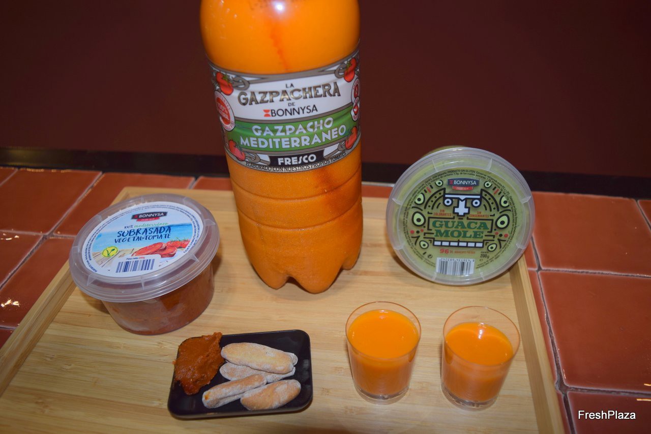 Primaflor sigue innovando con productos de IV gama: esta vez pudimos apreciar el gazpacho de aguacate y de mango.