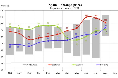 El precio de la naranja en España bajó a 81 euros/100 kg en octubre