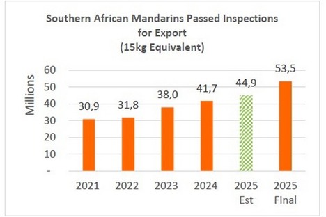 El volumen final de producción de mandarinas sudafricanas asciende a 53,5 millones de cajas
