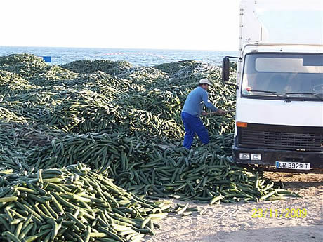 En el 2009, los cultivadores españoles volquetearon pepinos en la playa