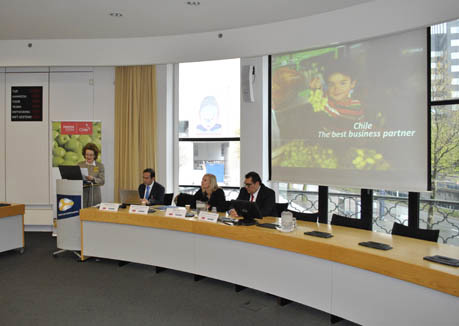 El día de ayer, lunes 25 de abril, se realizó el taller "Oportunidades y desafíos en la distribución de frutas desde Chile", en la Cámara de Comercio de Holanda ubicada en Rotterdam. El seminario contó con la presencia de la embajadora de Chile en los Países Bajos, María Teresa Infante Caffi, quien inició el evento agradeciendo a los participantes su interés en Chile como “país con posibilidades infinitas y potencial reconocido”, recalcando que están dispuestos a enfrentar los desafíos como país y ser fuente de oportunidades para los importadores, convirtiéndose en “los mejores socios en negocios”.