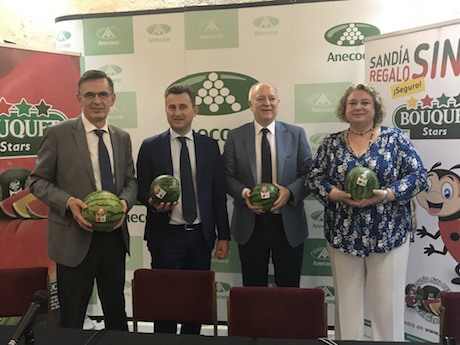 Anecoop ha reunido hoy a sus socios productores de sandía de Almería y Murcia y a los medios de comunicación, para presentar la Campaña de sandía Bouquet 2019. En Almería, donde arranca su calendario de producción y se concentra una parte importante de la misma, sus responsables han anunciado sus perspectivas tanto en materia de producción como de comercialización y promoción del producto.