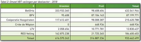 Tabla 2: Volumen de ventas de las subastas VBT por subsector - 2018 (hortalizas - frutas - total)