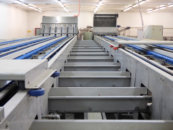 Una máquina totalmente automática clasifica los dátiles por color y peso.