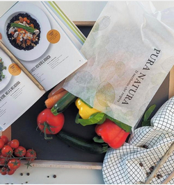 Pura Natura es una línea de bolsas de papel especiales de celulosa pura calandrada y semitransparente, certificada para estar en contacto con alimentos con un amplio espectro. La bolsa cumple con las más estrictas regulaciones alimentarias y con el sistema HACCP de análisis de peligros y puntos de control críticos. Utiliza papel de bajo grosor fabricado íntegramente con fibra larga y virgen (de ahí la sorprendente resistencia y elasticidad a la tracción), y cuenta con el certificado FSC que garantiza una gestión forestal correcta y responsable. Finalmente, el papel se somete a un tratamiento resistente a la humedad (<0,4%) en una mezcla con resina de epiclorhidrina alimentaria.
