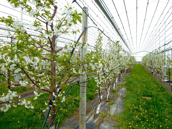 En la estación de investigación Clarksville, de la Universidad Estatal de Michigan, la floración comienza unos 14 días antes bajo un techo retráctil. Sin embargo, la diferencia varía según el clima. Las fincas de Clyde en Nueva Zelanda han podido adelantar la floración y la cosecha unas tres semanas. "El techo retráctil nos permite llegar al mercado a tiempo para el fuerte período previo a la Navidad", dice Kevin Paulin, de Clyde Orchards. "La mayoría de las variedades no están disponibles en las tiendas hasta después de Navidad y, como tenemos oferta antes que nuestros competidores, obtenemos una prima por kilogramo durante las semanas previas a la Navidad". Además de comenzar antes, la empresa también utiliza su centro de envasado algunas semanas más por año, y llegar antes ayuda a asegurar al personal desde el principio y mantenerlo durante toda la temporada. "Aunque hemos podido adelantar la floración y la cosecha tres semanas, creemos que podríamos conseguir que se adelantasen cuatro semanas".