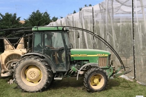 Si, por otro lado, un productor ya tiene un huerto con una cubierta antigranizo, la solución es colocar una malla antiinsectos que descanse directamente sobre los anclajes de la cabecera y luego, cuando necesite acceder al huerto, use sistemas que suban y bajen la malla, para facilitar el paso de las máquinas.
