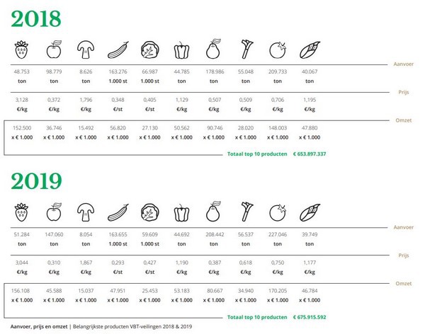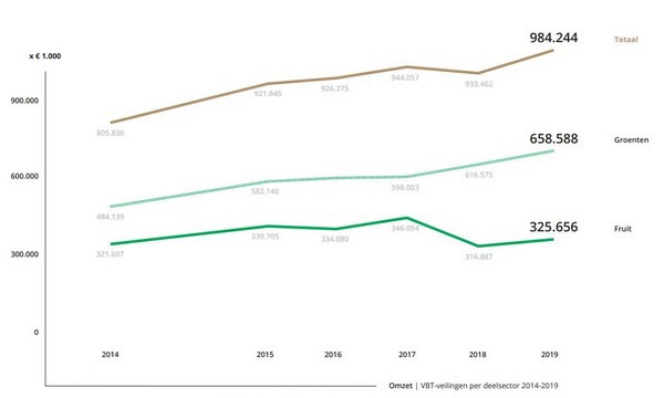 2019 fue un año para estar orgulloso para la Asociación de Subastas Belgas de Horticultura (VBT) y sus miembros. Con una facturación de 982 M€ en el segmento de frutas y verduras frescas y más de 100 M€ en el segmento congelado, fue un año récord.