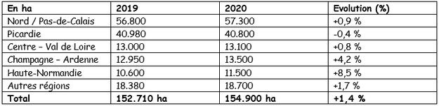Las superficies en 2020 aumentan un 1,4% (fuente: CNIPT/UNPT + Agreste):