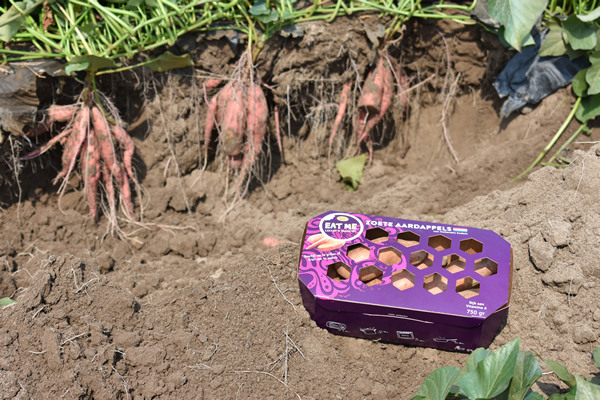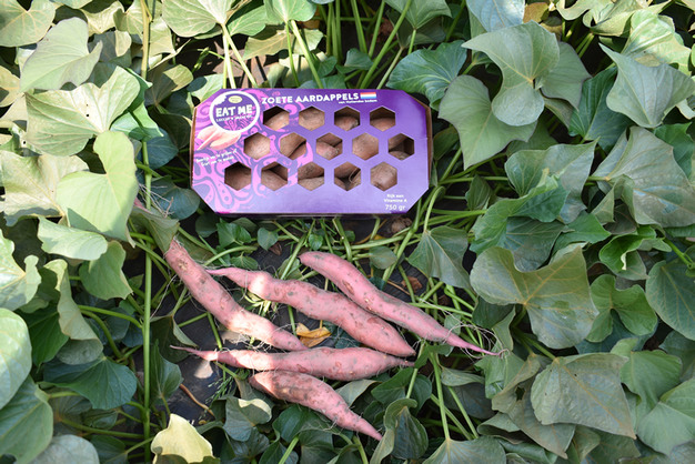 El productor Goertz suministra las batatas en contenedores reutilizables a Nature's Pride, que las clasifica y empaqueta en sus propias instalaciones. La empresa cuenta con una nueva línea de procesamiento donde se cepillan y clasifican las batatas y donde se lleva a cabo el control de calidad. El importador desarrolló un nuevo envase de cartón de 750 gramos especialmente para las batatas holandesas bajo la marca EAT ME, en el que el producto es claramente visible. "La cadena de supermercados PLUS es un buen cliente para nuestros productos frescos exóticos, mientras que los artículos de producción local son un pilar importante en su estrategia. Cuando se decidió que Nature's Pride iba a realizar las ventas y la distribución de estas nuevas batatas, mi primera llamada telefónica fue a PLUS", dice el gestor de cuentas Frits de Bruin.