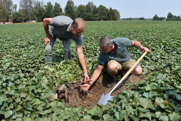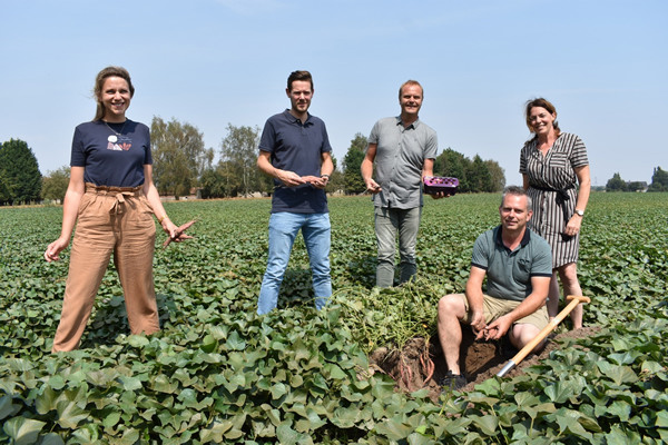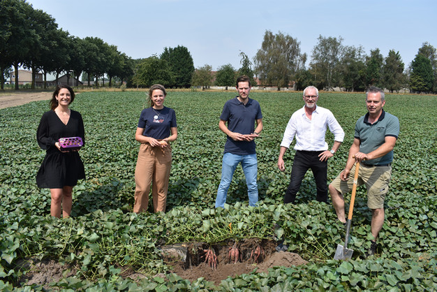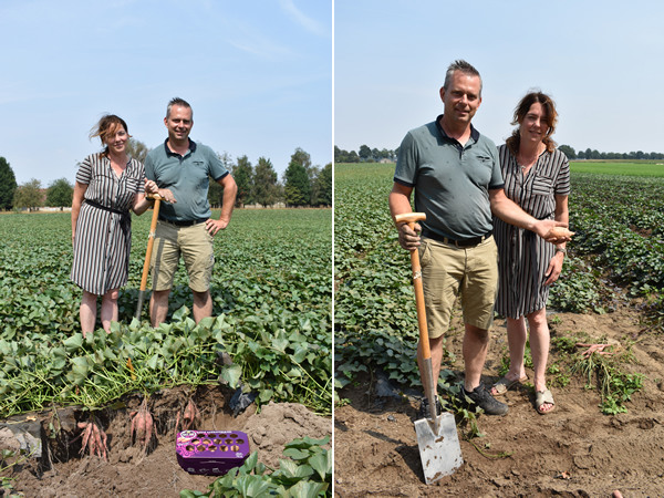 Un productor de espárragos y arándanos que busca un cultivo adicional, un importador que investiga si el cultivo de productos exóticos podría llevarse a cabo más cerca de casa debido al clima cambiante, y un retailer que trabaja tanto como sea posible con productos locales, esto es lo que unió al productor Franc Goertz, la empresa comercializadora Nature's Pride y la cadena de supermercados PLUS en un proyecto de cadena para el cultivo de batatas en los Países Bajos. Con una superficie de 28 hectáreas de batatas, es uno de los mayores proyectos de cultivo holandés para el mercado de productos frescos. Esta semana, se recolectaron simbólicamente las primeras batatas, ya que todavía tienen que seguir creciendo. Desde mediados de septiembre hasta al menos mediados de enero, las batatas holandesas estarán disponibles exclusivamente en las sucursales del supermercado PLUS.