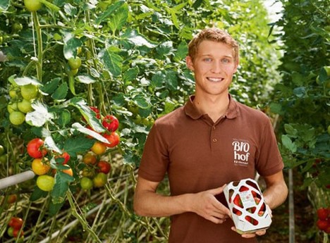 "Gracias a la estabilidad del envase, el producto está muy protegido frente a los daños. También elimina el riesgo de que los tomates sufran magulladuras en la cesta de la compra o de camino a casa con los consumidores. El producto respira a través de las aberturas, lo que reduce el riesgo de que se forme moho. De igual manera, no puede formarse condensación, algo que sí que suele ocurrir con los envases de plástico", aclara Florian Steiner, director gerente de BIOhof Kirchweidach.