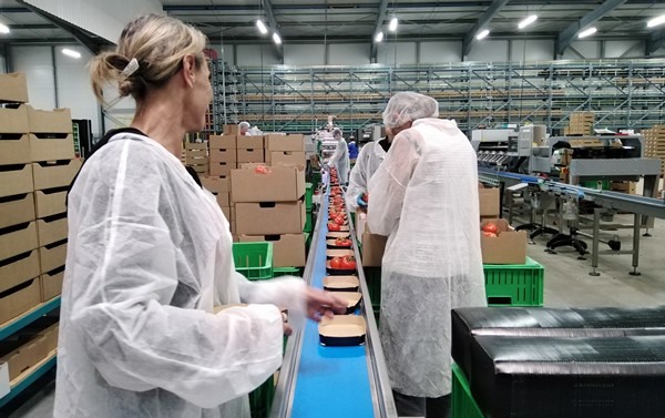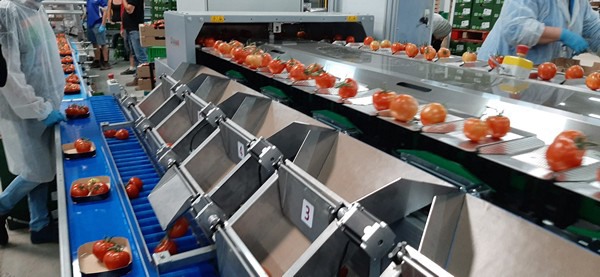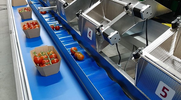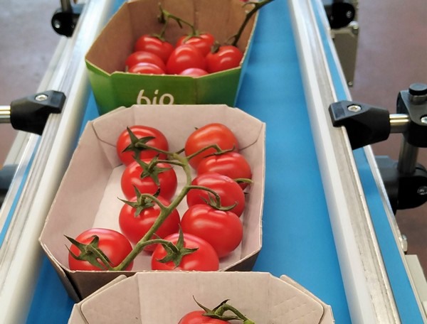 "Finalmente, un operario al final de la línea coloca los tomates dentro de la barqueta. Nuestras máquinas se pueden conectar a cualquier envasadora o flowpack".
