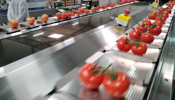 Esta cantidad específica de producto se carga en una tolva, que después coloca los tomates junto a la barqueta correspondiente.
