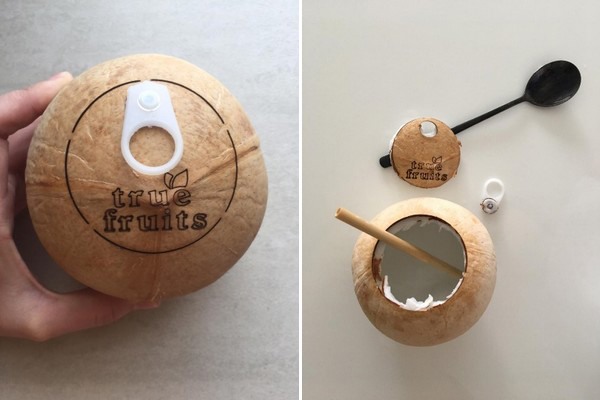 Para solucionar este problema, True Fruits ha desarrollado un nuevo producto, una anilla adherida al coco. "Los consumidores solo tienen que tirar de la anilla y beberse el agua de coco como si se bebieran un refresco de lata. Una característica de estos cocos con anilla es que el material de la pajita es bambú en lugar de plástico".