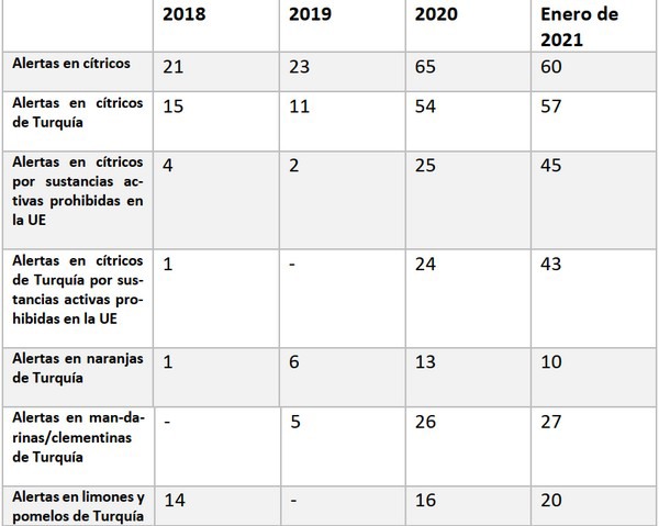 El Comité de Gestión de Cítricos (CGC) exige a la Comisión Europea (CE) que actúe con carácter de urgencia para frenar la ola de importaciones de cítricos procedentes de Turquía con problemas de residuos de plaguicidas. Las incidencias detectadas se refieren a partidas de limones, naranjas, pero sobre todo de mandarinas turcas en las que los inspectores oficiales acreditan que bien superan el límite máximo de residuos permitido (LMR, en partes por millón), bien han sido tratadas con sustancias activas prohibidas en la UE por su alta toxicidad y/o por ser poco respetuosas con el medioambiente. Así lo reflejan los datos oficiales del sistema RASFF –la red de alerta rápida para alimentos de la UE-, que ya en 2020 registró una cifra récord de rechazos en frontera en cítricos turcos –hasta 54, cinco veces superior a la de 2019, que se elevaron a 11- pero cuya evolución se ha agravado, más si cabe, hasta cuotas insospechadas durante las últimas semanas de este mismo año.