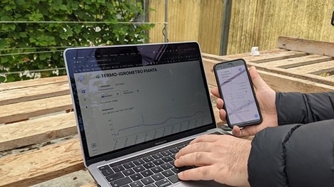 "En los invernaderos instalamos un termohigrómetro interno, un termohigrómetro de suelo (sensores de temperatura y humedad), una mini estación meteorológica externa e interruptores para abrir puertas (premotorizadas) o encender ventiladores. Mediante nuestro software, las puertas y ventiladores se activan automáticamente al alcanzar los umbrales de temperatura y humedad establecidos (gracias a un algoritmo que cruza los datos). Además, Andrea Angilletti recibe una notificación cada vez que algún valor alcanza ciertos umbrales y se realiza una operación automática. El sistema permite un ahorro considerable de tiempo y mano de obra".