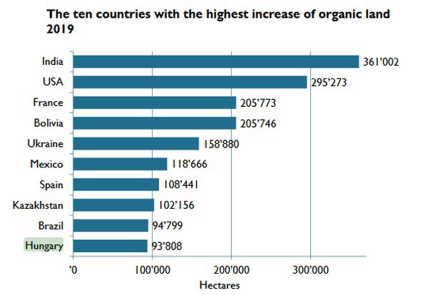 El Hungarian Research Institute of Organic Agriculture (ÖMKi) ha informado recientemente de que Hungría se encuentra entre los 10 países con mayor desarrollo de la agricultura ecológica, según el informe "The World of Organic Agriculture Statistics and Emerging Trends 2021" del Research Institute of Organic Agriculture FiBL e IFOAM.