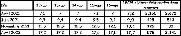 Precio medio en el mercado libre para la semana que termina el 13 de abril de 2021: 15,02 £/q (14,01 £/q la semana pasada, +/- 19,53 €/q).