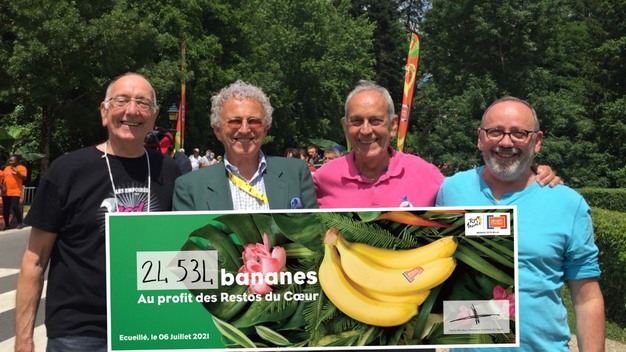 La operación solidaria KM 97 organizada, el 1 de julio de 2021, durante la etapa 6 del Tour de Francia (Tours-Châteauroux) en la comuna de Ecueillé, permitió recoger un total de 24.534 bananas de Guadalupe y Martinica para Restos du Cœur: