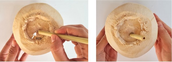 Paso 3: Usa una pajita para ir agrandando el ojo y disfruta del agua de coco.