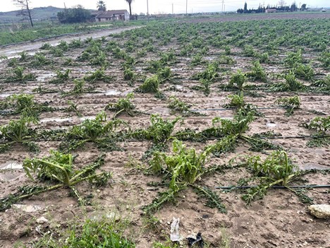 El granizo mató las plantas en los campos de alcachofas de la Piana di Gela, destruyendo decenas de hectáreas de hortalizas que estaban listas para la cosecha, con un daño incalculable para las empresas. Una de ellas es la empresa Golden Fruit, de Giuseppe Scudera.