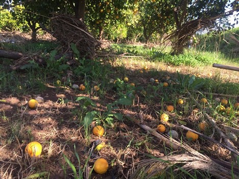 Naranjo roto por la furia del río S. Leonardo (Lentini, provincia de Siracusa)