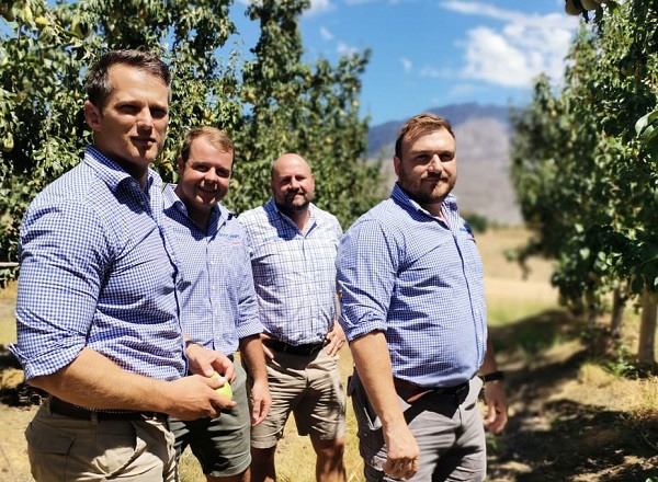 Los responsables de exportación de Good Hope Fruit en una plantación de Abate Fetel: Marnus Schoeman, Melt van Schoor, Anroux Smit y Jan Ras van der Linde