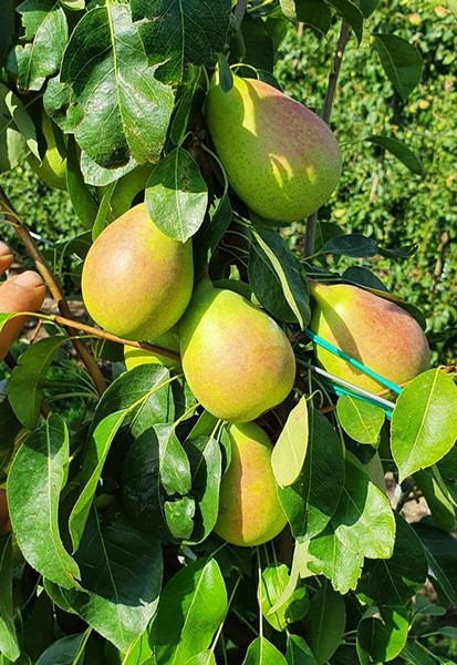 (En la foto de al lado, peras de la variedad Coscia, de excelente tamaño y con un color superpuesto tendiendo al rojo gracias a la buena exposición al sol)