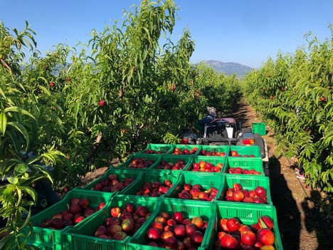 La cosecha de nectarina está finalizando en los túneles de Huelva, a la vez que empieza a aumentar la disponibilidad en Murcia y Extremadura, donde, al contrario del campo murciano, se ha adelantado la cosecha debido al tiempo seco y cálido. “El calor está haciendo que la calidad y la cantidad vaya subiendo. Hemos terminado con nuestra variedad Patagonia y estamos iniciando con Copacabana, la variedad subácida más temprana de que disponemos, de carne amarilla, calibre medio de A y Brix entre 10 y 12 grados, y cuya superficie se está extendiendo en Murcia. Más adelante vendrá la cosecha de nuestra variedad Caracas, que está en nuestro top 10 en ventas”.