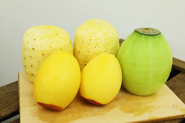 "Las piñas no son fáciles de pelar a mano. Por motivos de comodidad, algunos clientes prefieren comprarlas cortadas sin importar su alto precio. Esas piñas de IV gama que se venden en los supermercados suelen procesarse en fábricas y después se envían a las tiendas. Pero la piña prepelada es muy perecedera cuando pasa mucho tiempo en los estantes o cuando la temperatura ambiente cambia durante el procesamiento o el transporte. Entonces, la calidad de la fruta se deteriora y esta se pudre con facilidad. Esto no solo se traduce en desperdicio de alimentos en la tienda, sino que también podría provocar las quejas de los consumidores", expone Ryo. "Ahora, algunas tiendas colocan la peladora junto al lineal de las piñas. Así, los consumidores pueden pelar la fruta en la tienda. El rápido proceso de pelado y la perfección del pelado han atraído a muchos clientes a la tienda. Parece que nuestra peladora se usa también como herramienta promocional para las ventas de fruta", dice Ryo riendo.