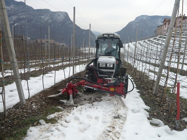 "A la Rampetta se le pueden instalar fácilmente muchas herramientas, como una cortadora de hierbas, casquillo giratorio, rastrillos giratorios, gradas y discos. Gracias al sistema hidráulico del tractor, Rampetta se puede posicionar siguiendo la pendiente del terreno para un trabajo óptimo. Otra gran ventaja que tiene es que las herramientas se pueden cambiar fácilmente", informa Alessandro Calderoni.
