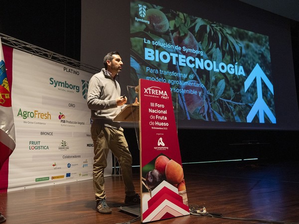 La sesión de ponencias técnicas comenzó con la intervención de Pedro Casas (Symborg) que abordó la importancia de la biofertilización y bioestimulación, seguido de la ponencia de Antonio Vicente Sanz (Ideagro) sobre un patógeno emergente que afecta a los frutales de hueso.