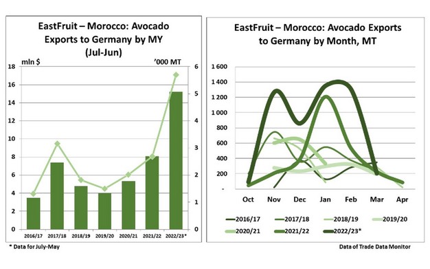 Junto con otros destinos, Marruecos ha aumentado activamente sus exportaciones de aguacate a Alemania, informa EastFruit. Las exportaciones al mercado alemán se han más que cuadruplicado desde la campaña 2016/17 (julio-junio) y han alcanzado las 5.000 toneladas valoradas en 17 millones de dólares.