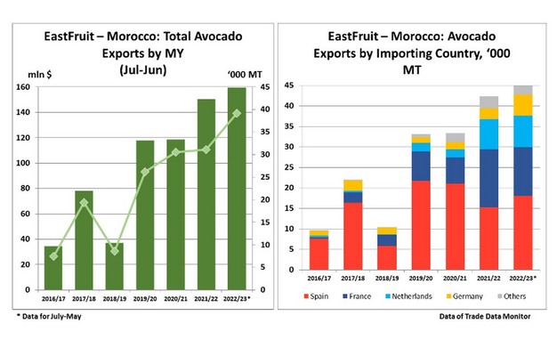 La temporada actual no ha sido una excepción, y Marruecos ha exportado 45.000 toneladas de aguacates por valor de 139 millones de dólares entre julio de 2022 y mayo de 2023. Además, los exportadores marroquíes han ampliado su geografía de ventas. Hace 6 años eran 19 los países importadores, mientras que en la actualidad ese número ha aumentado a 25.
