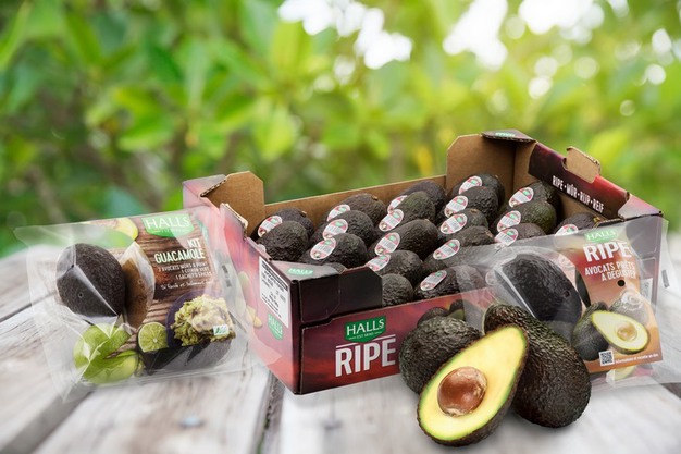 Aguacates frescos de Halls y branding de productos.