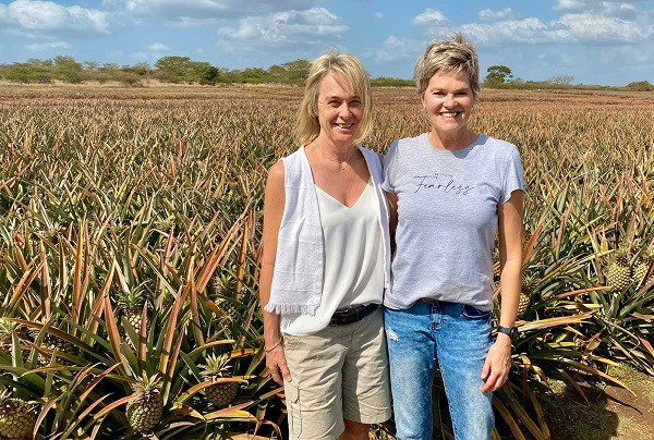 Antoinette Erasmus, de Umfomothi Pineapples, con Ilse Ras, de Direct Produce Marketing, en Hluhluwe (KwaZulu-Natal).