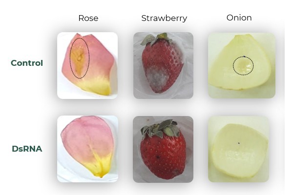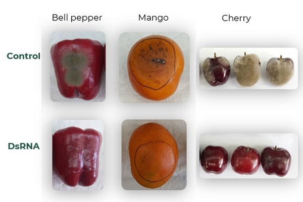 HarvestR, radicada en Israel, ha probado con éxito en laboratorio tratamientos basados en ARNbc para tratar hongos en frutas clave como la uva. La siguiente fase de ensayos comerciales a gran escala acaba de empezar e incluye las uvas y las peras. Gal Admati, director general de HarvestR, afirma: "Lo hemos probado en uvas y pretendemos añadir peras y mangos a continuación, y más adelante para una amplia variedad de patógenos fúngicos que atacan a otros cultivos en el campo. En general, se puede tratar cualquier fruta u hortaliza que sufra de hongos patógenos".
