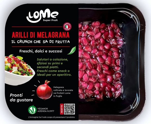 La empresa agroalimentaria planea posicionarse en este interesante segmento de mercado de forma muy rentable. "Ya estamos preparados con nuestros arilos de granada Lome Super Fruit®, marca bajo la que también comercializamos el producto fresco y nuestros zumos de granada 100% puros prensados en frío. Incluso para los arilos de IV gama, en Masseria Fruttirossi podemos garantizar a compradores y consumidores el origen y la cadena de producción: solo envasamos arilos de granadas cultivadas en nuestras 400 hectáreas, aplicando disciplinas agronómicas respetuosas con el medio ambiente, todo ello respaldado por las numerosas certificaciones internacionales de calidad que poseemos, como GlobalGAP, BRC, IFS, SMETA y Vegan OK".