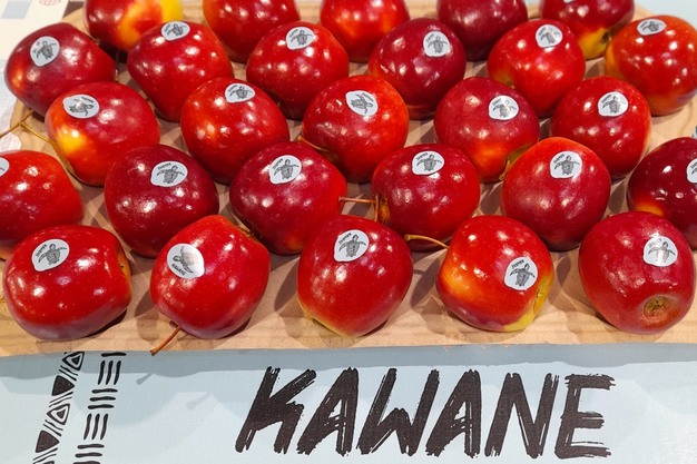 Dirigida a mercados lejanos como Centroamérica, Oriente Medio y Asia, Kawane es una manzana "muy roja, lavada, sin rayas y muy brillante". Pero lo que la hace especial es la combinación de un alto contenido de azúcar y una muy buena firmeza. "Generalmente, cuando tenemos una manzana muy dulce, la firmeza es menor. Es bastante raro en el sector de la manzana combinar estos dos factores. Esto supone una gran ventaja para las exportaciones a gran escala, ya que la manzana puede recorrer largas distancias (que ahora son todavía más largas con los problemas que experimenta el transporte marítimo) y al mismo tiempo satisfacer las expectativas de los consumidores internacionales, a los que les gustan especialmente las manzanas dulces. Gracias a su capacidad de conservación, hay muy poca depreciación y pérdida de mercancías en la tienda, con una elevada rotación, lo que resulta muy atractivo para los minoristas".